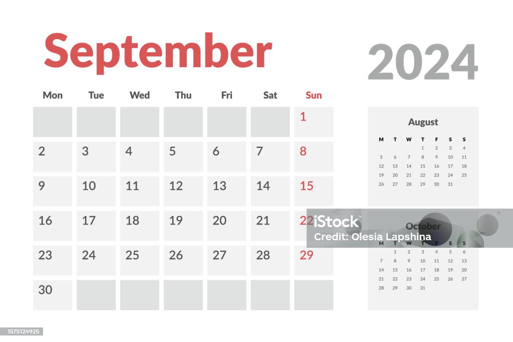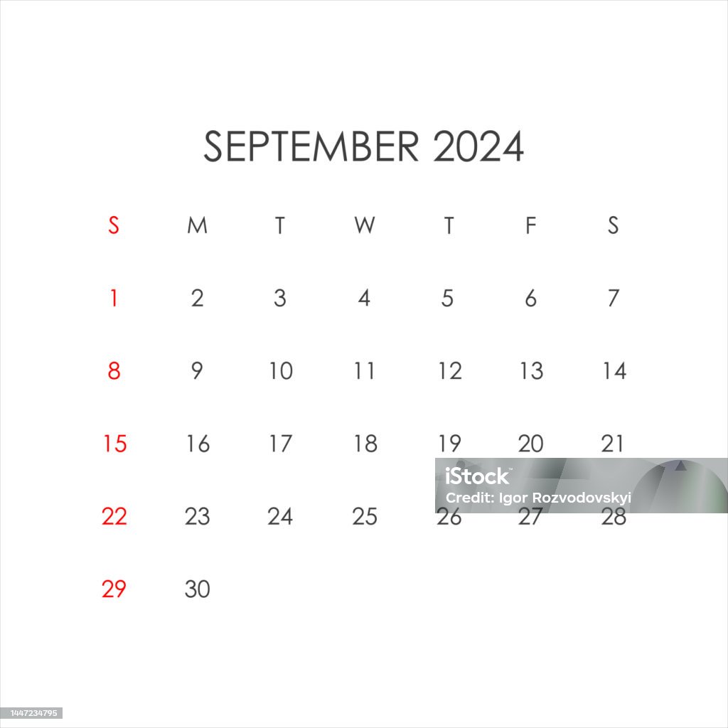 Calendar For September 2025 In A Minimalistic Style Vector Stock